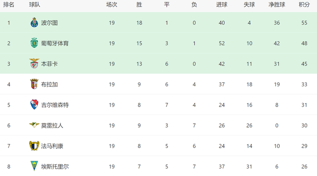 本场过后,波尔图在葡超已经实现11连胜,上一次他们在联赛中丢分,还是在主场战平本菲卡,这也是赛季至今,波尔图在葡超唯一一场没赢的比赛,其他18场全胜。几乎完美的发挥,让波尔图在积分榜上遥遥领先。如今排名第二的葡萄牙体育,落后波尔图7分,根本无力威胁领头羊的位置。